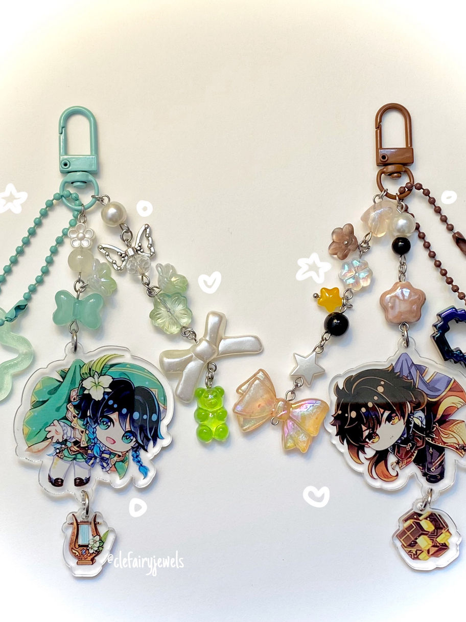 Handmade beaded keychains with acrylic Genshin Impact character charms