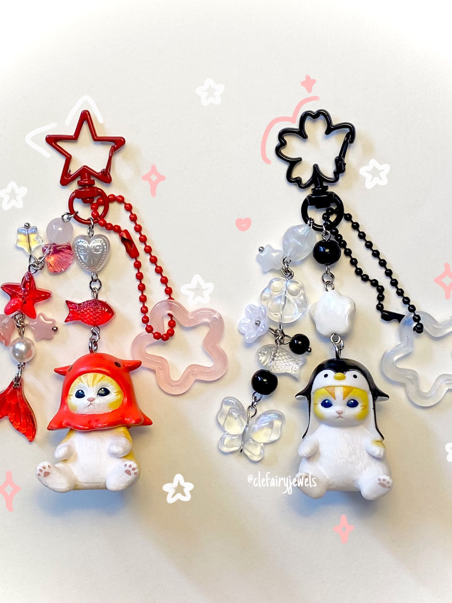 Handmade beaded keychains attached to official Mofusand Series 2, 3 & 4 Figures