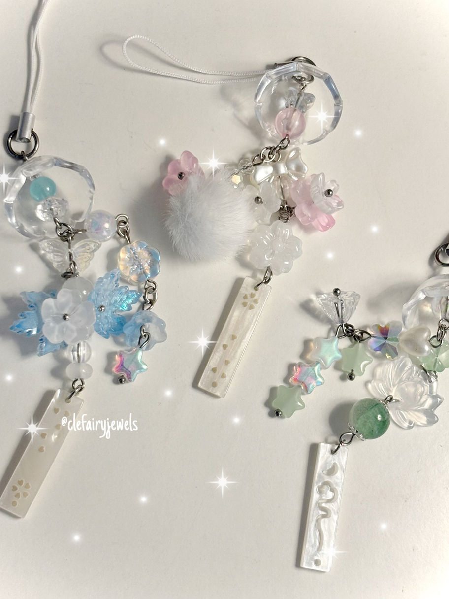 Handmade phone charms in Japanese Furin Wind Chime designs